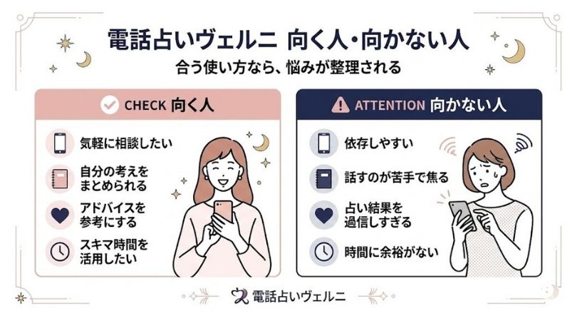 電話占いは便利なぶん、気持ちが弱っていると“回数が増える方向”に働きやすい。