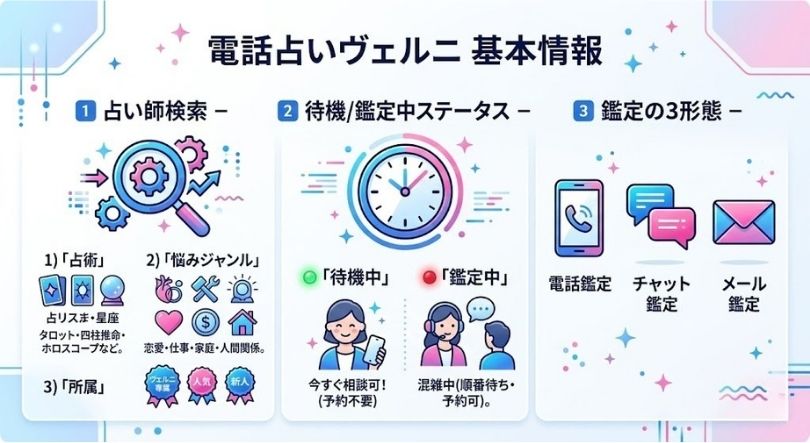 電話占いヴェルニの基本情報|「探しやすい」「選びやすい」設計