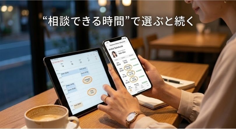 最初は「相談テーマ1行」→「質問3つ」→「時間」を決めてから探すと迷いにくいです。