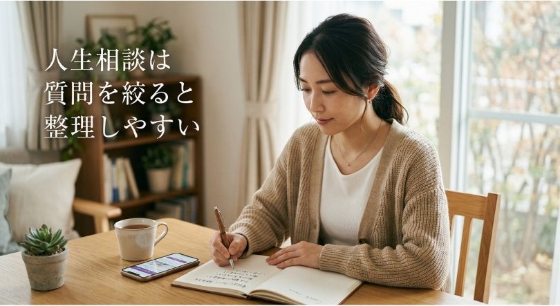 結論から言うと、人生相談は「正解を当ててもらう場」と考えるより、「今の自分がどこで止まっているかを整理する場」と考えた方が使いやすいです。