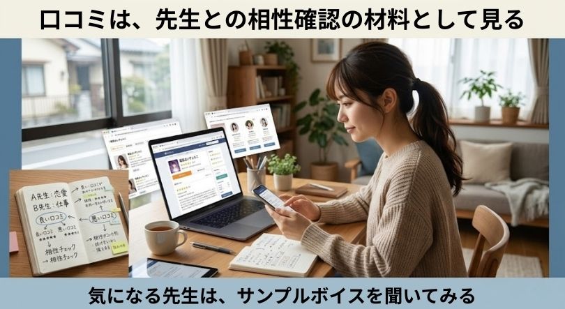 そのため、口コミは正解探しではなく、相性を見つける手がかりとして使うのが自然です。